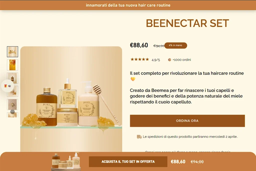 Landing page sviluppata per il brand Beemea, con l’obiettivo di valorizzare il prodotto in ogni suo aspetto, sia visivo che comunicativo. Il design è stato curato in collaborazione con l’agenzia Anima E-commerce, per garantire una presentazione efficace e in linea con l’identità del marchio.