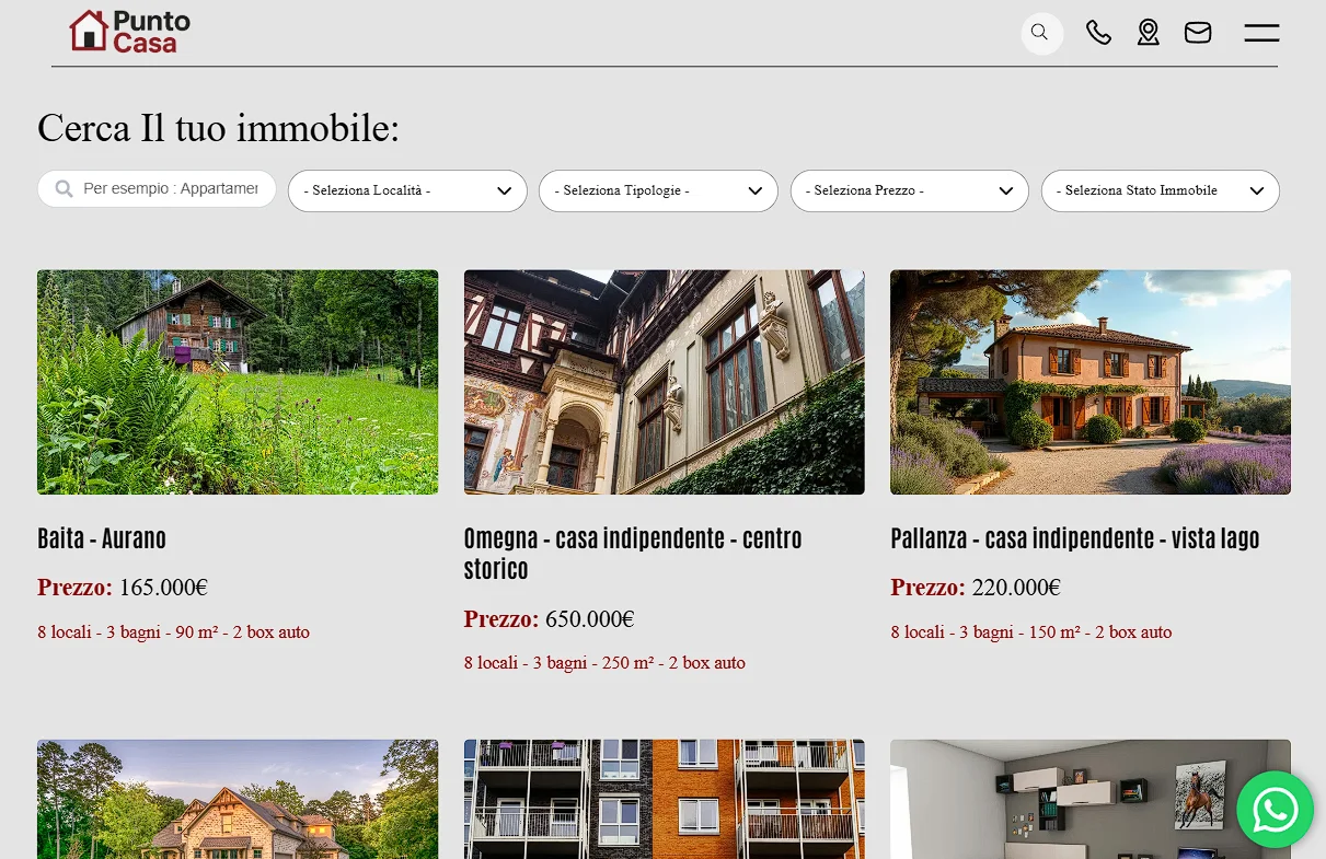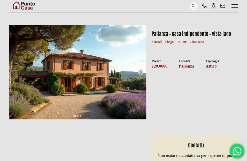 PuntoCasa non è una vera agenzia immobiliare, ma un progetto dimostrativo pensato per rappresentare un sito web dedicato alla vendita di immobili. L’obiettivo è mostrare come un’agenzia potrebbe presentare al meglio le proprie proposte, con schede dettagliate per ogni immobile, immagini curate, e strumenti utili come filtri di ricerca avanzati, selezione per prezzo, posizione e caratteristiche. Un modello concreto e funzionale, ideale per chi desidera un sito moderno e su misura per il mercato immobiliare.